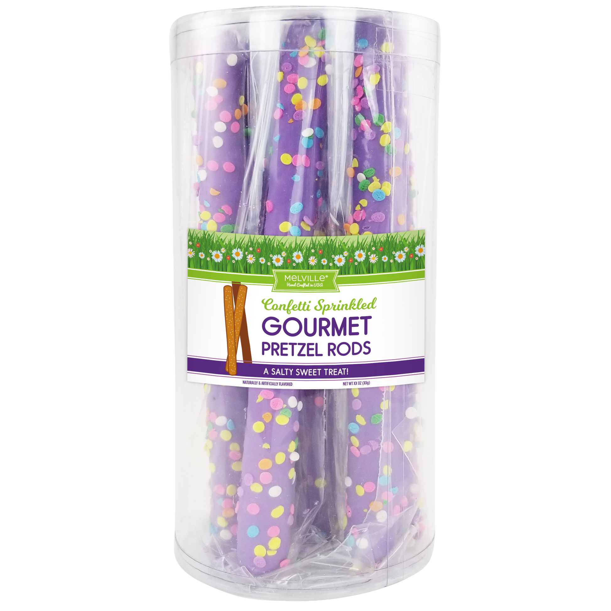 Chocolatey Dipped Pretzel Rods - Pastel Rainbow Confetti